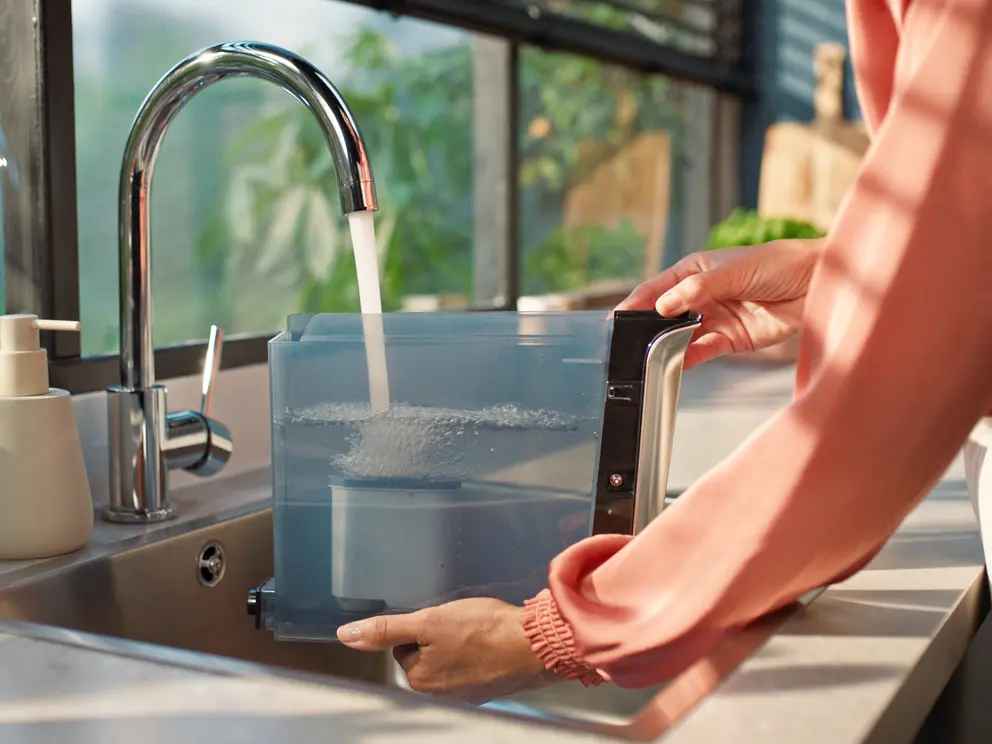 Ar AquaClean ūdens filtru var pagatavot līdz 5000 tasītēm kafijas³ bez atkaļķošanas.